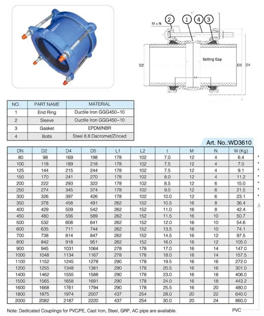 • Łącznik elastyczny do rur z żeliwa sferoidalnego (dedykowany)Łącznik elastyczny do rur z żeliwa sferoidalnego (dedykowany)