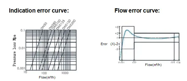 maksymalny dopuszczalny błąd w wysokim obszarze (Q2≤Q≤Q4) wynosi ± 2%, gdy temperatura wody wynosi> 30 ℃,